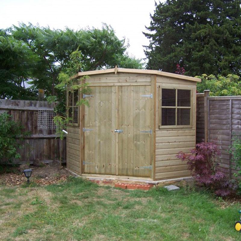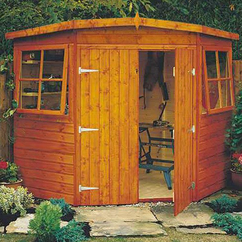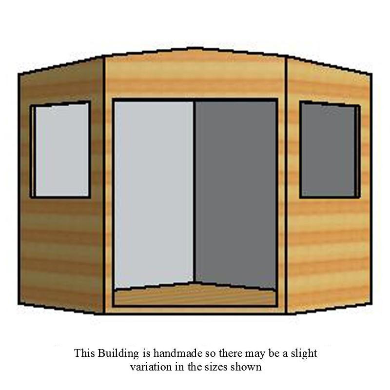 An attractive, useful building ideally suited for a corner location. The double doors allow easy access to the furthest point. Turning an awkward corner into useful space.