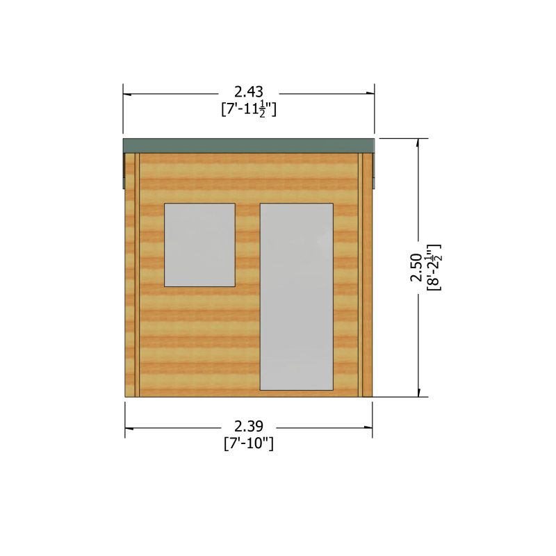 A unique sloping roof design adds some extra character to this building. Ample light and an airy feel make this an ideal extra room for your property. This would be a perfect building for a home office. Photo shows 8×8 with optional side window.